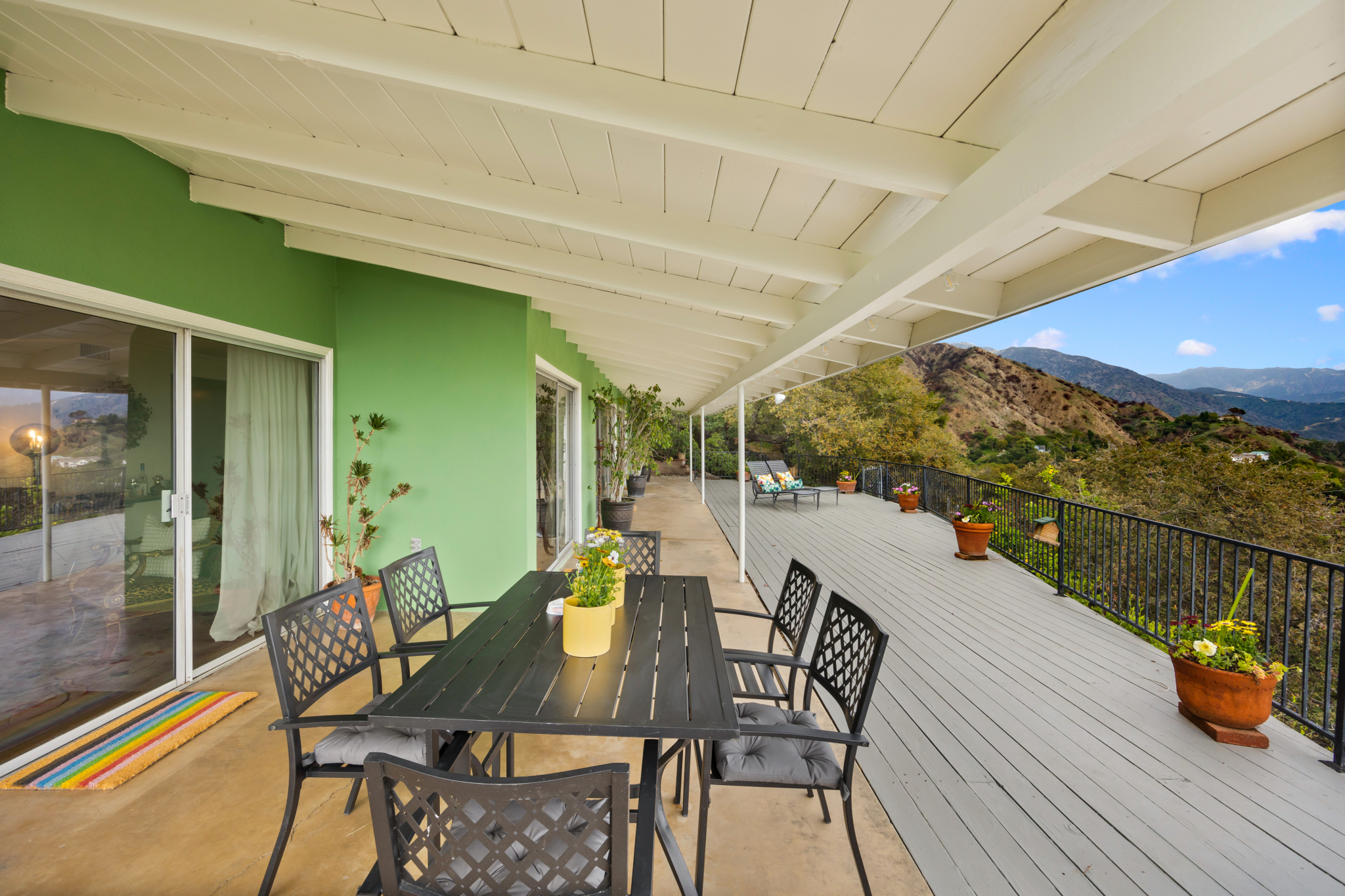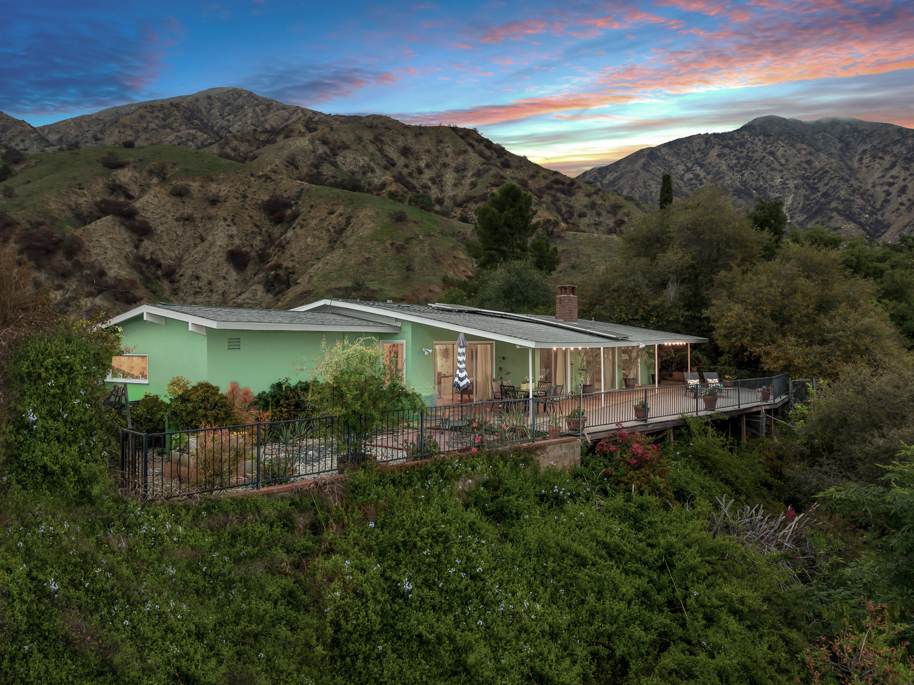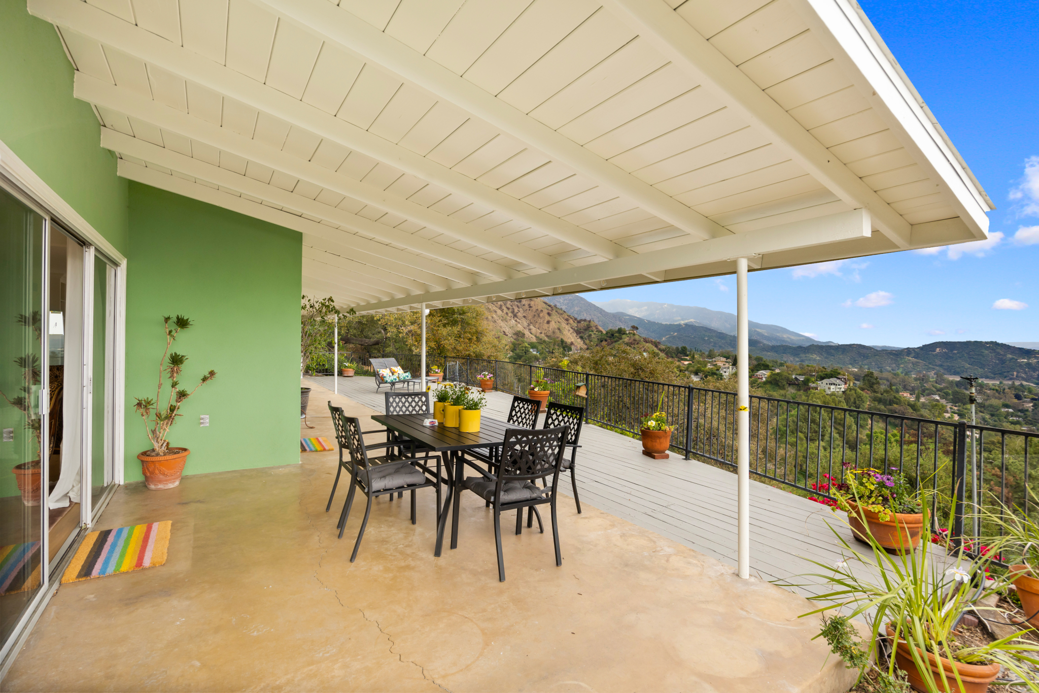 Meander to the top of the world and located near the end of a quiet road you’ll find this classic Mid-Century home boasting breathtaking, panoramic valley and mountain views from every room.  If you crave privacy and a slower-paced lifestyle, look no further – this property offers a rare and exceptional opportunity to experience your dream.  For hiking enthusiasts, the property is just steps from Mount Wilson Trailhead making nature’s beauty and extension of your backyard.  Step inside through the flagstone entrance and immediately discovery the “wow factor”.  An inviting atmosphere awaits, where an open concept design is centered around a striking two-sided fireplace.  Floor-to-ceiling windows in the living room, dining area and sitting room seamlessly blend indoor and outdoor spaces, drawing you in with mesmerizing views that invite you to kick your shoes off and stay awhile.  A cozy sitting nook, lined with two walls of built-in shelving, is perfect for showcasing family treasures and beloved books. Sliding glass doors in the living room, dining area and primary bedroom open to an expansive viewing deck – an ideal setting for intimate dinners or entertaining on a grander scale, all while basking in the beauty of nature that surrounds you. The backyard provides space for a garden or pets, and the property is also adorned with a pomegranate and lemon tree.   Recent updates include fresh interior paint, new flooring, window coverings, and new refrigerator, washer and dryer.  Don’t miss your opportunity to enjoy daily peace and tranquility – you are just one offer away…