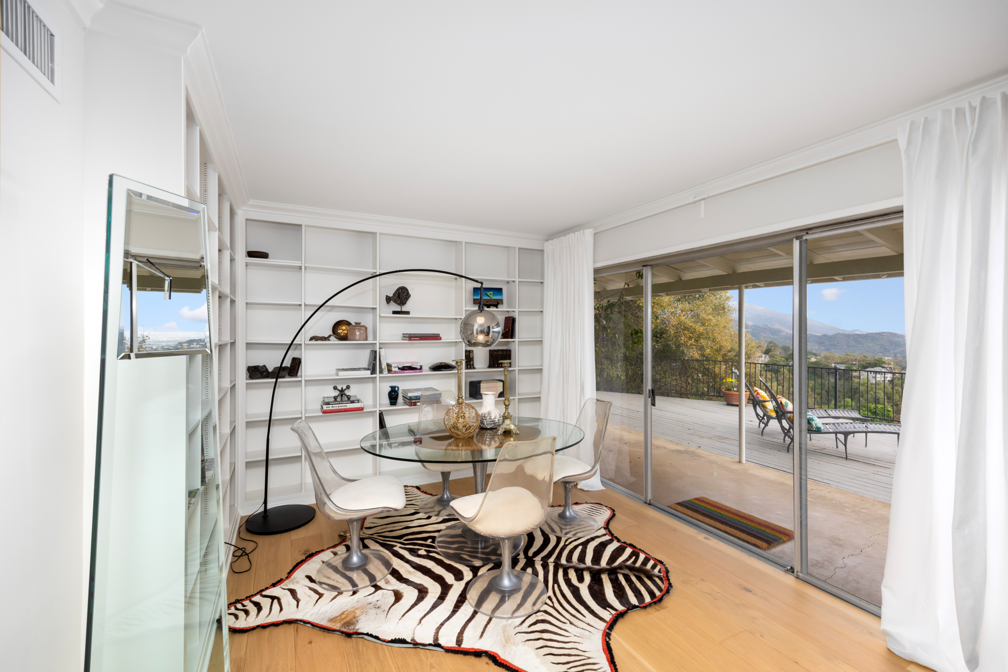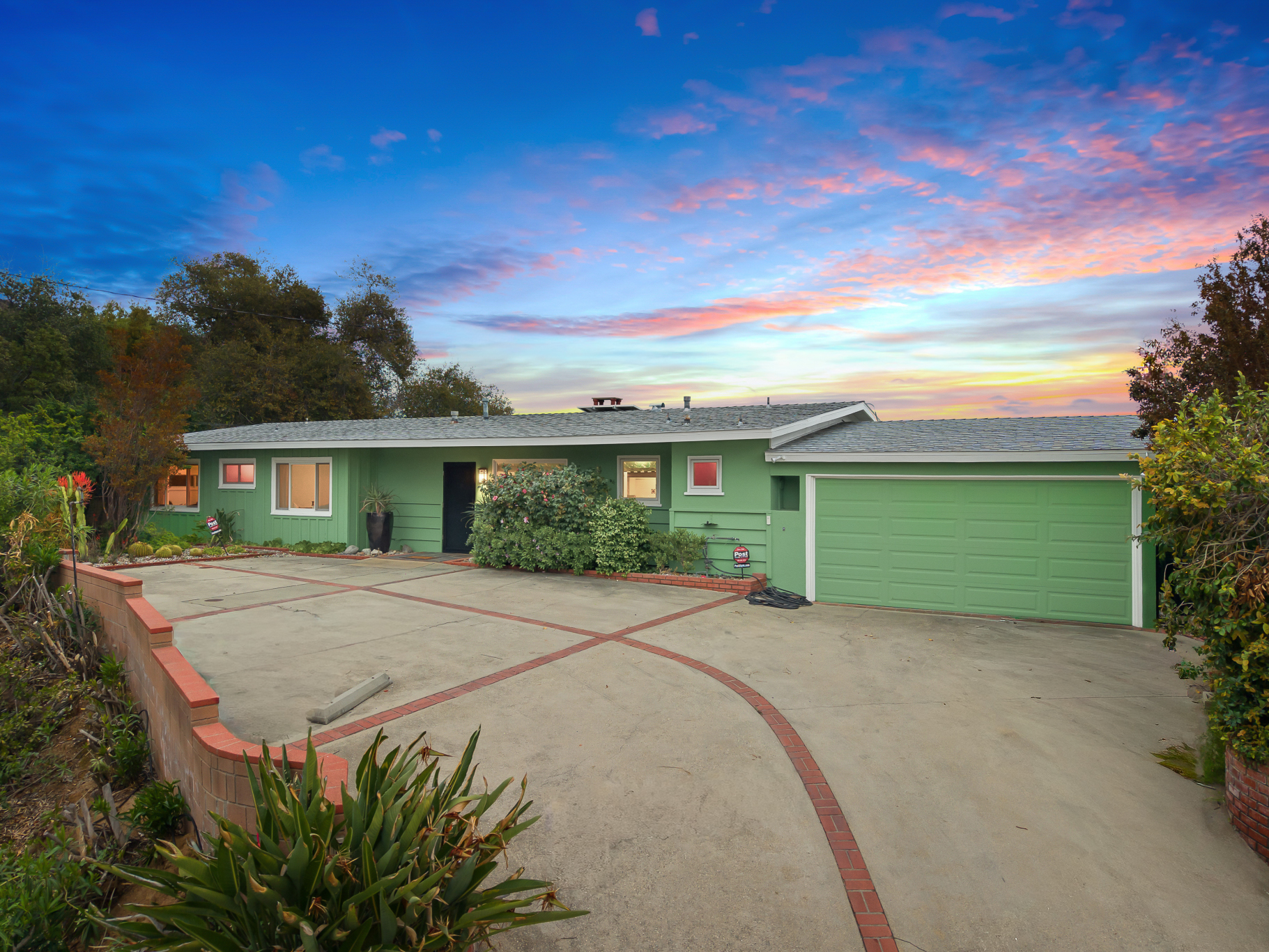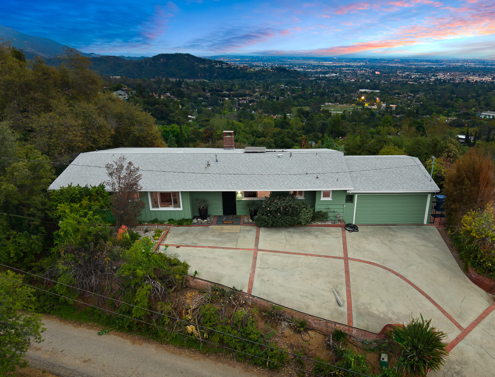Meander to the top of the world and located near the end of a quiet road you’ll find this classic Mid-Century home boasting breathtaking, panoramic valley and mountain views from every room.  If you crave privacy and a slower-paced lifestyle, look no further – this property offers a rare and exceptional opportunity to experience your dream.  For hiking enthusiasts, the property is just steps from Mount Wilson Trailhead making nature’s beauty and extension of your backyard.  Step inside through the flagstone entrance and immediately discovery the “wow factor”.  An inviting atmosphere awaits, where an open concept design is centered around a striking two-sided fireplace.  Floor-to-ceiling windows in the living room, dining area and sitting room seamlessly blend indoor and outdoor spaces, drawing you in with mesmerizing views that invite you to kick your shoes off and stay awhile.  A cozy sitting nook, lined with two walls of built-in shelving, is perfect for showcasing family treasures and beloved books. Sliding glass doors in the living room, dining area and primary bedroom open to an expansive viewing deck – an ideal setting for intimate dinners or entertaining on a grander scale, all while basking in the beauty of nature that surrounds you. The backyard provides space for a garden or pets, and the property is also adorned with a pomegranate and lemon tree.   Recent updates include fresh interior paint, new flooring, window coverings, and new refrigerator, washer and dryer.  Don’t miss your opportunity to enjoy daily peace and tranquility – you are just one offer away…